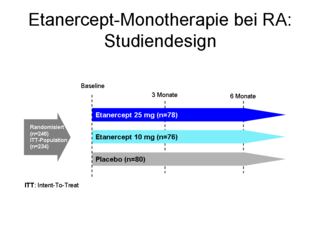 - Etanercept bewirkt bei Patienten mit aktiver RA eine signifikante, dosisabhängige Verbesserung der Krankheitsaktivität